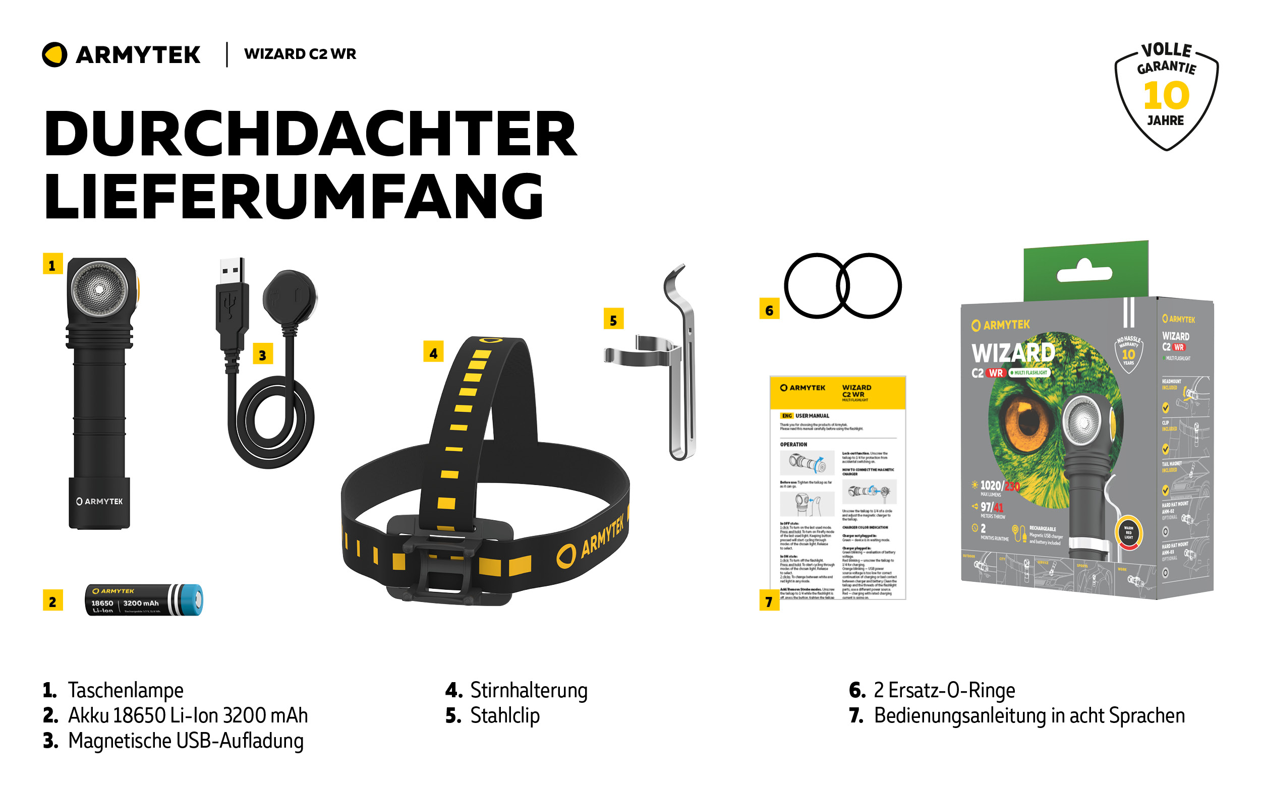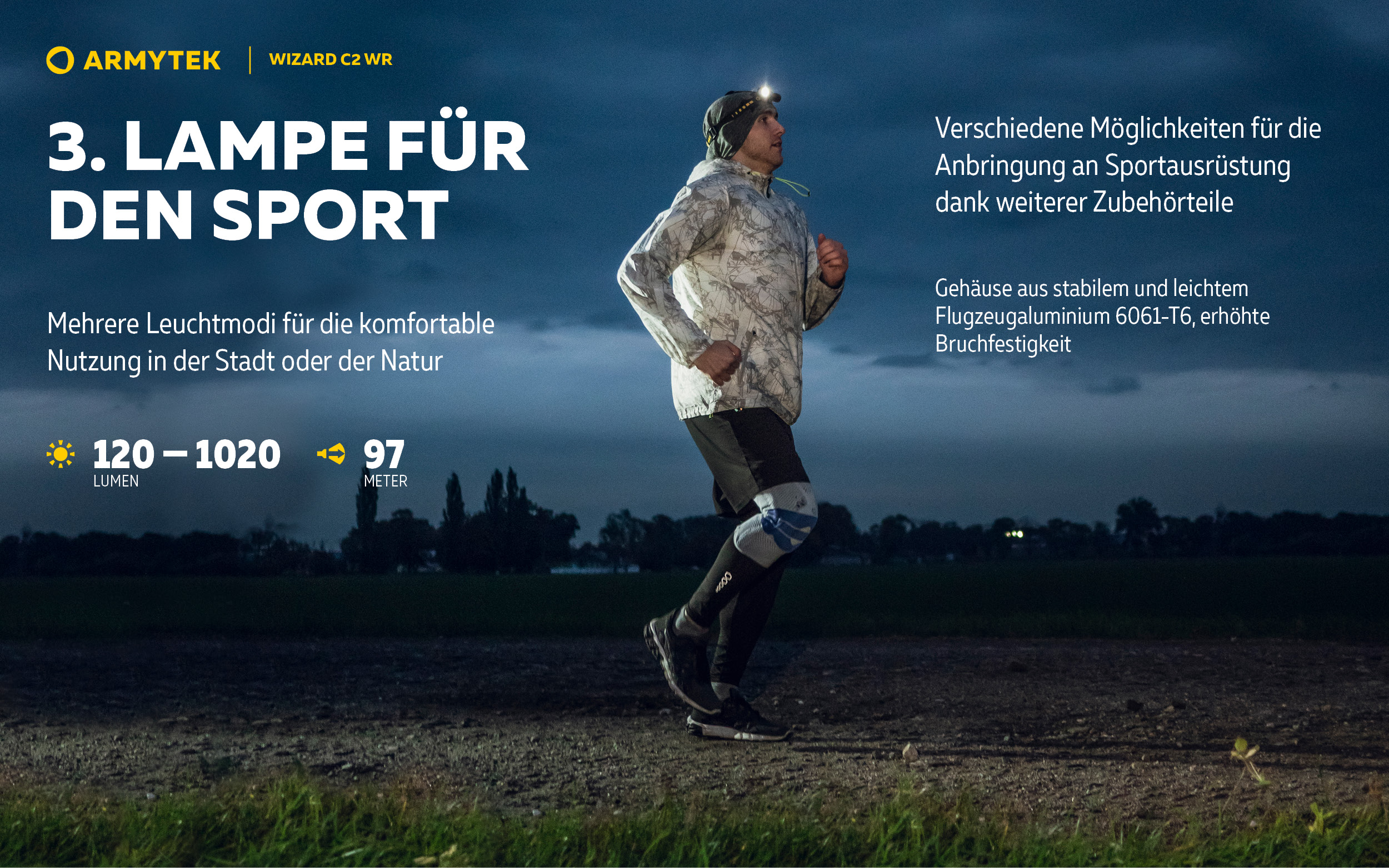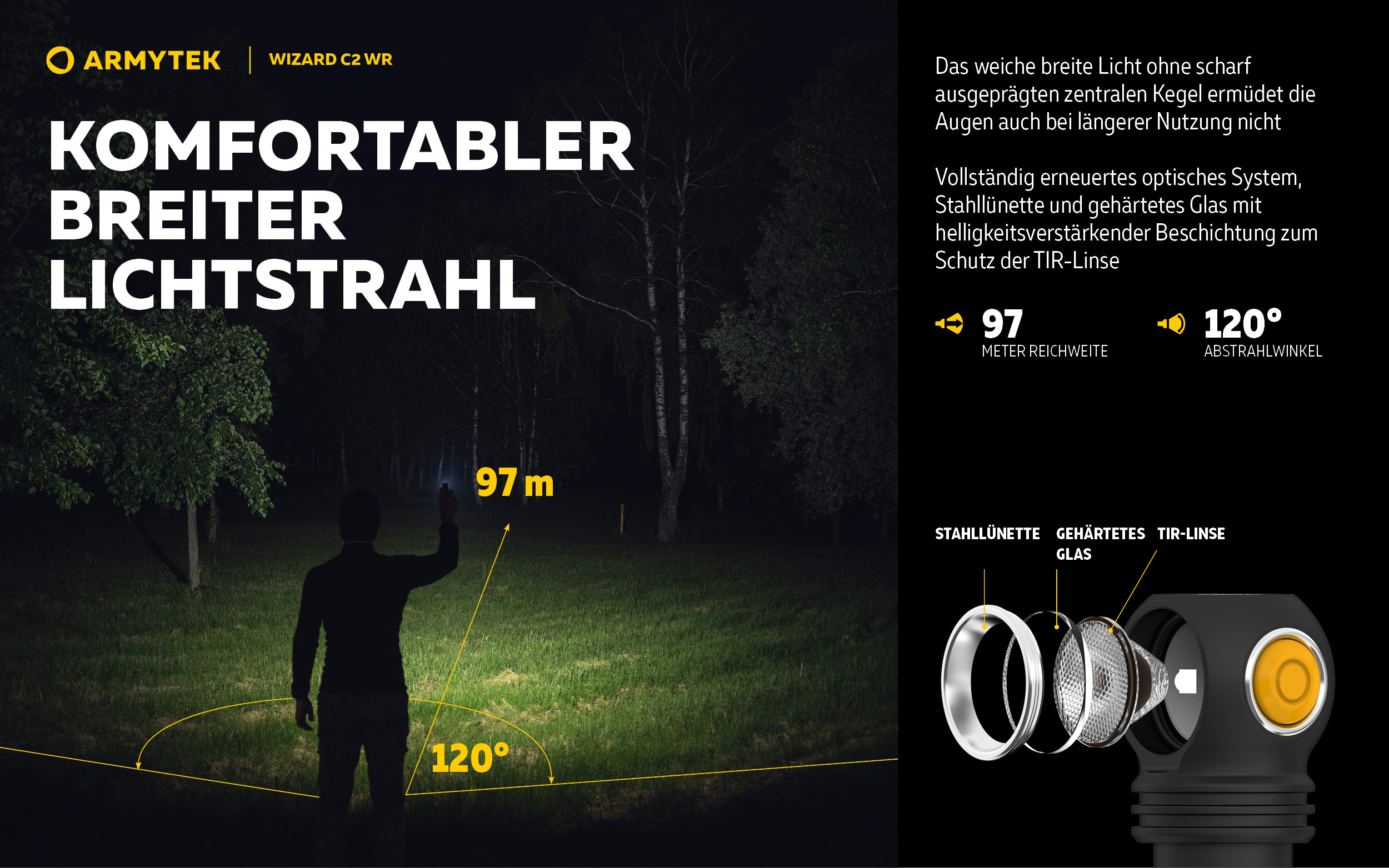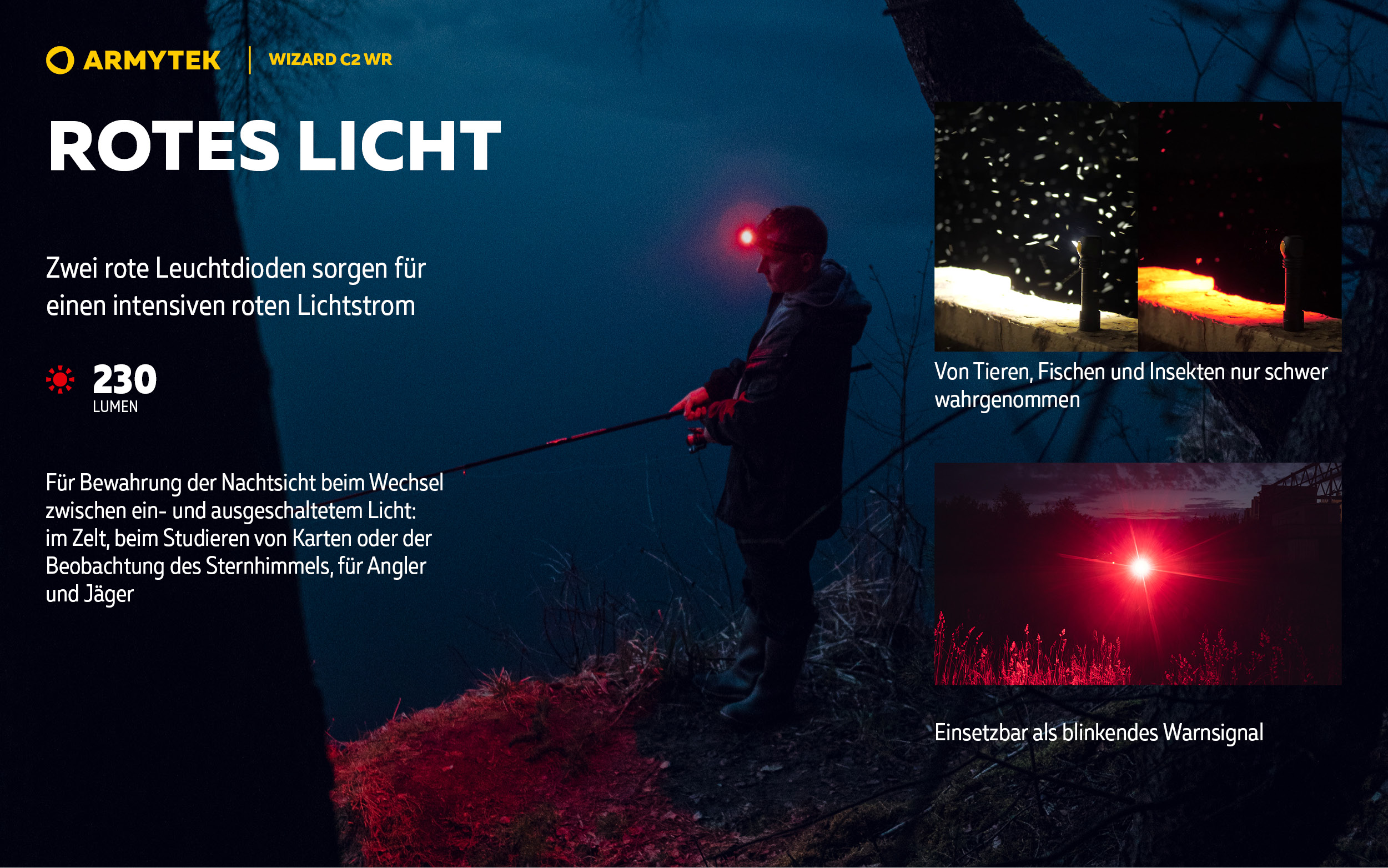 Mit ihrer kombinierten Weiß- und Rotlichtfunktion eignet sich die Wizard C2 WR perfekt für nächtliche Aktivitäten wie Camping, Angeln, Jagd, Wandern oder Arbeiten im Dunkeln. Das warme Licht sorgt für eine natürliche Farbwiedergabe und angenehme Ausleuchtung, während das rote Licht die Dunkeladaption der Augen erhält, Wildtiere nicht erschreckt und Insekten fernhält.