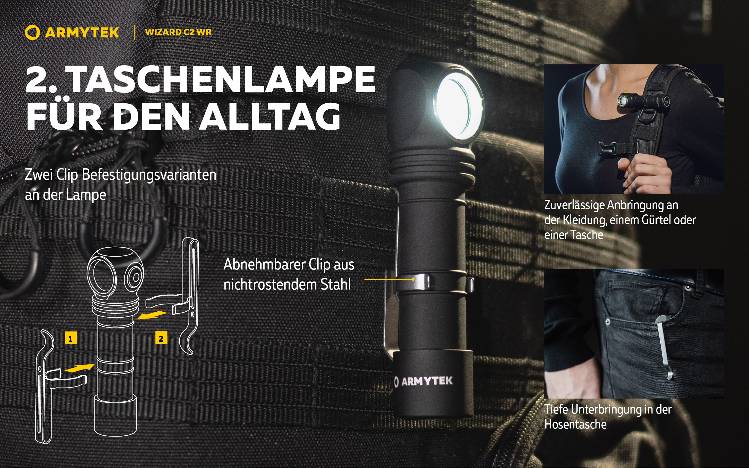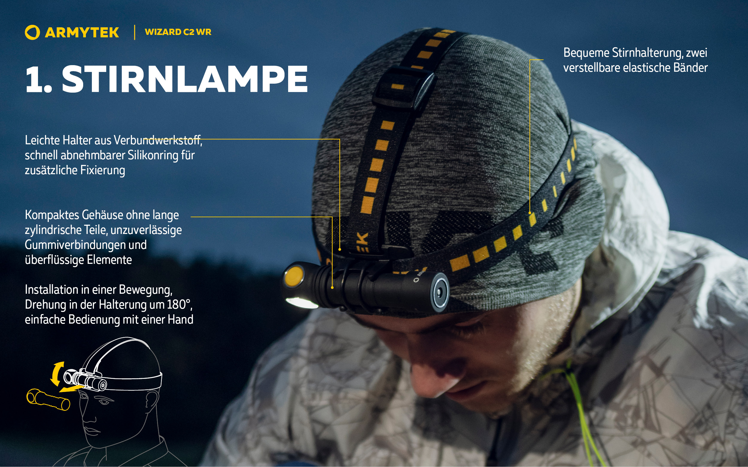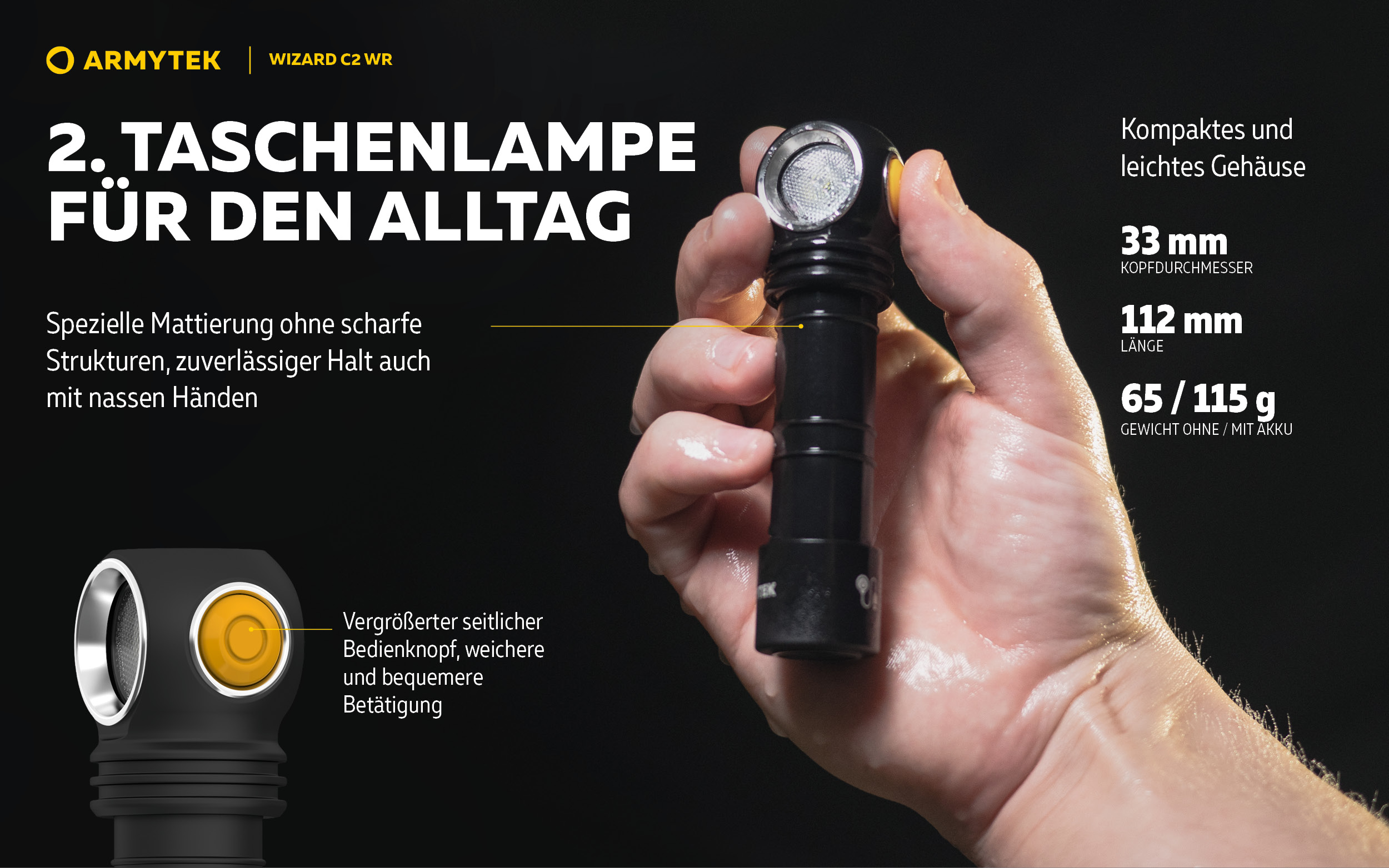 Ob als Stirnlampe im Outdoor-Einsatz, als Werkzeuglampe bei der Arbeit oder als Rücklicht am Fahrrad – die Wizard C2 WR Warm ist eine leistungsstarke, vielseitige und langlebige Lichtlösung.