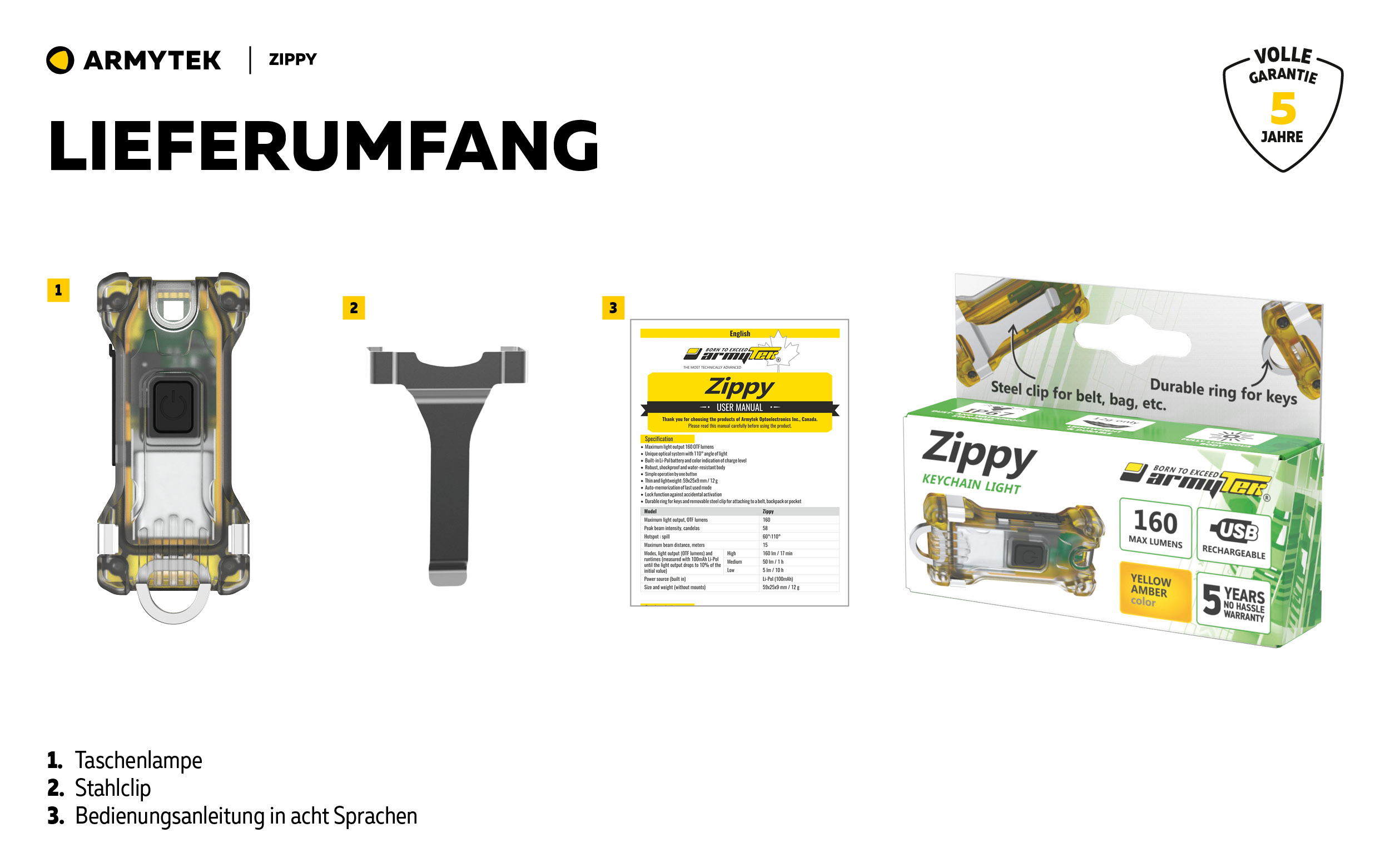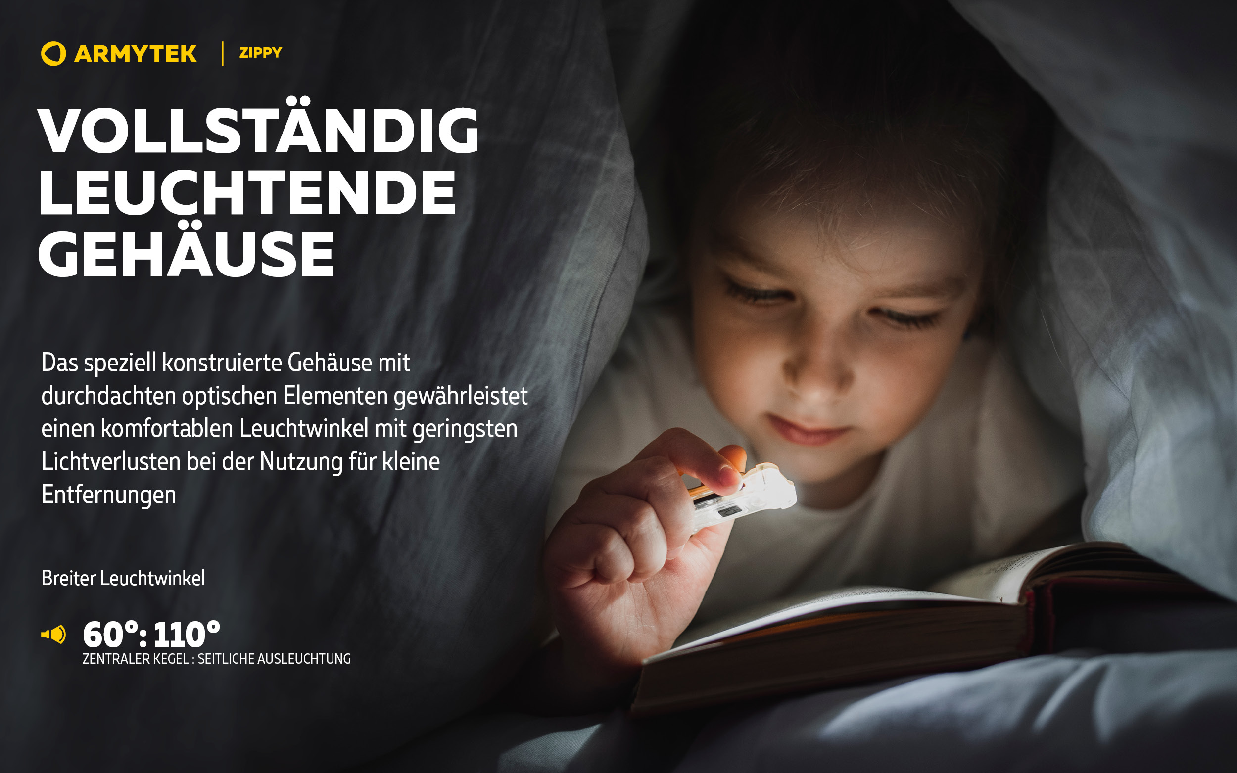 Mit ihrer kompakten Bauweise, dem klaren Lichtkegel (110° Streuung, 60° Spot) und der einfachen Bedienung ist die Zippy die perfekte Begleiterin für Alltag, Reisen, Camping oder als Backup-Lampe in der Ausrüstung.