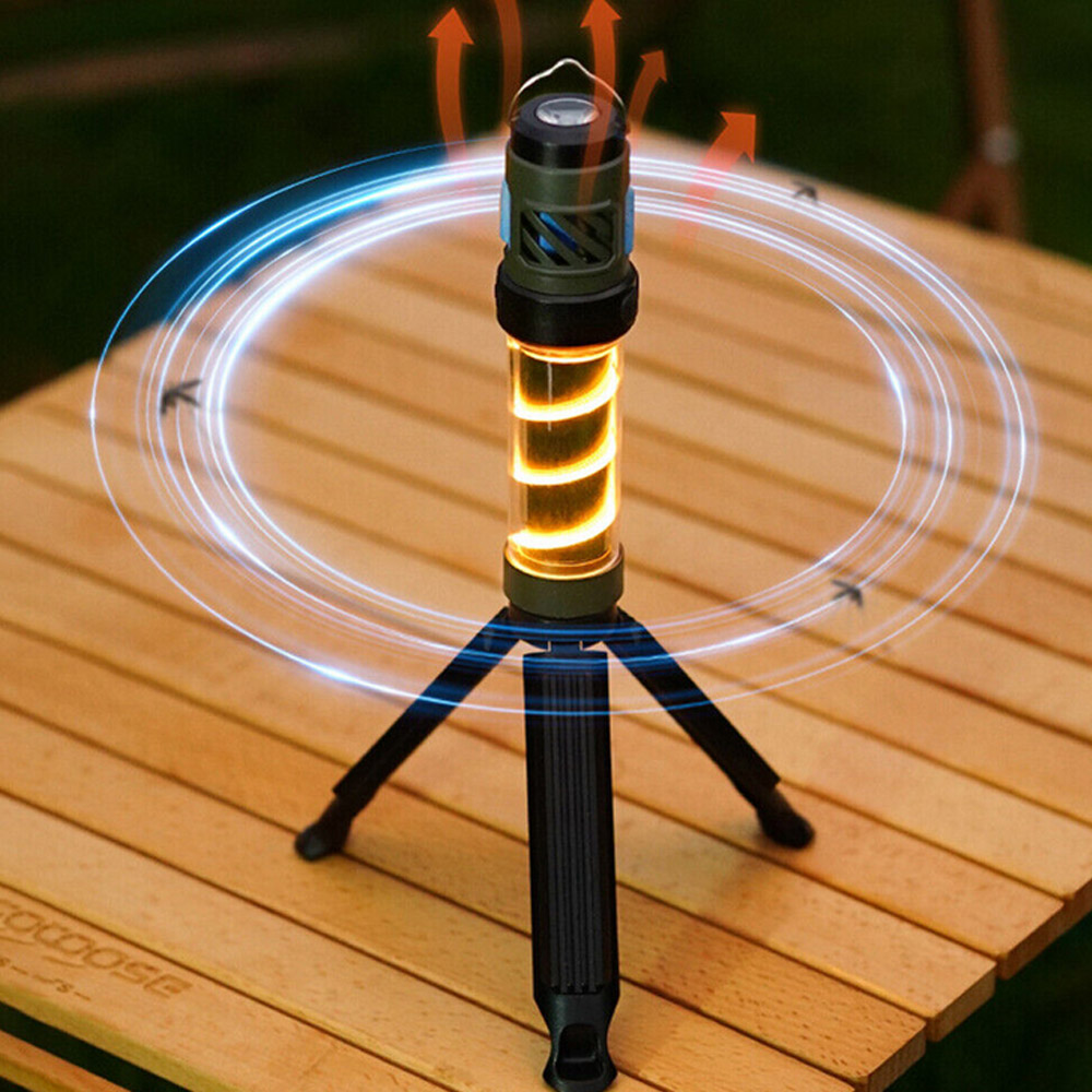 3-in-1-Mückenabwehrlampe, per USB wiederaufladbares Teleskopstativ, Außenleuchte, wasserdichte Nachtangelleuchte mit Dreieckshalterung für Camping im Freien
