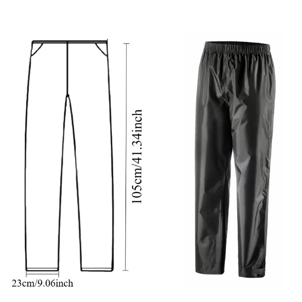 Das hochwertige Material ist wind- und wasserdicht, dabei angenehm leicht und kompakt zu verstauen. Die Regenhose besitzt eine Länge von ca. 105 cm und bietet dank des weiten Schnitts ausreichend Bewegungsfreiheit, auch über normaler Kleidung. Der Poncho verfügt über eine großzügige Kapuze mit Kordelzug und verlängertem Rückenteil – perfekt zum Schutz von Rucksack oder Tasche.