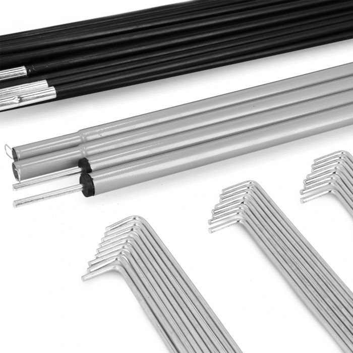 - Mitgelieferte Stifte und Seile für sicheren Stand.