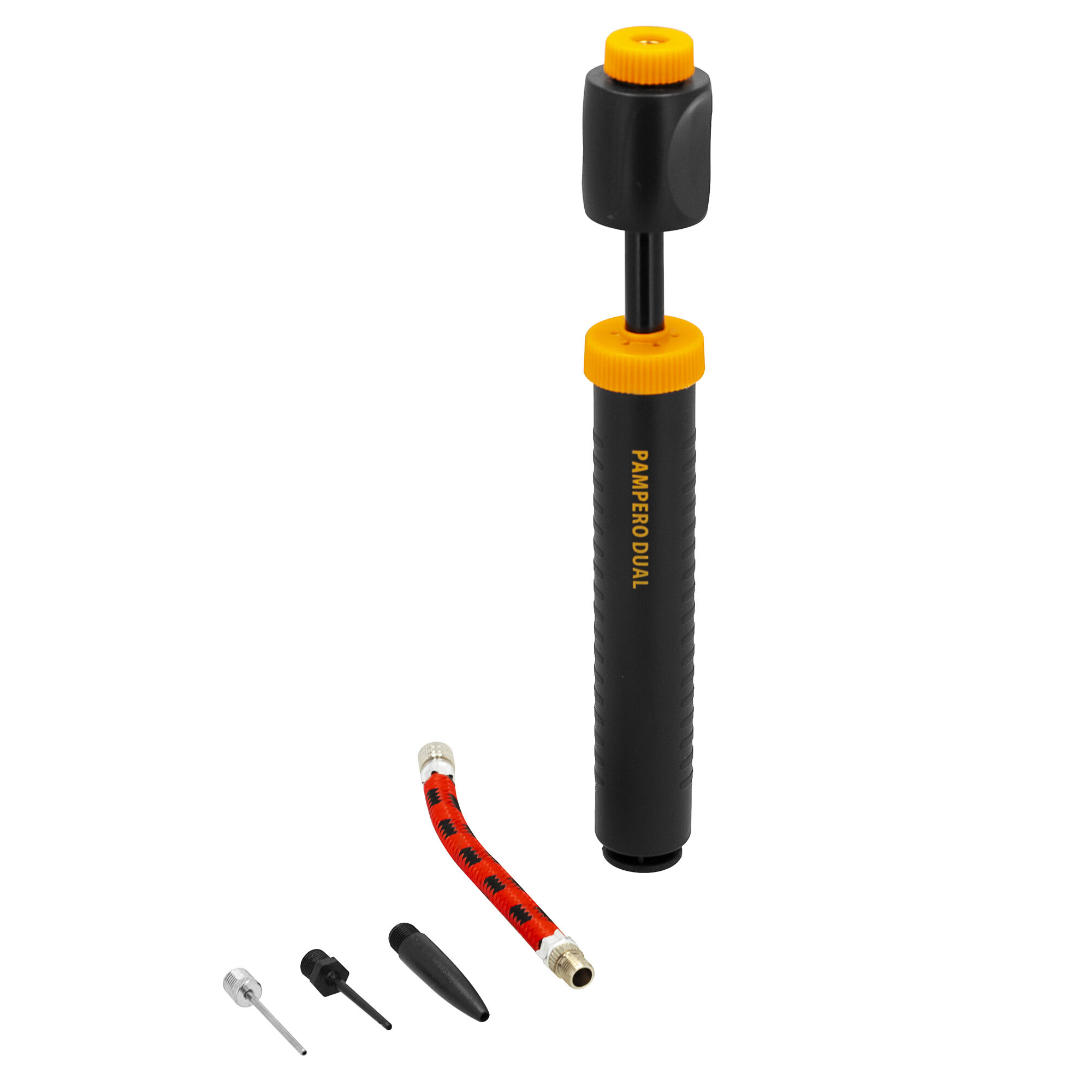 Dank ihrer handlichen Maße von nur 19,5 x 2,5 cm (ohne Aufsatz) passt die Pumpe in jeden Rucksack oder jede Tasche und ist somit perfekt für unterwegs. Im Lieferumfang enthalten sind ein flexibler Schlauch sowie drei verschiedene Ventilaufsätze, sodass du zahlreiche Sport- und Freizeitgeräte problemlos aufpumpen kannst.