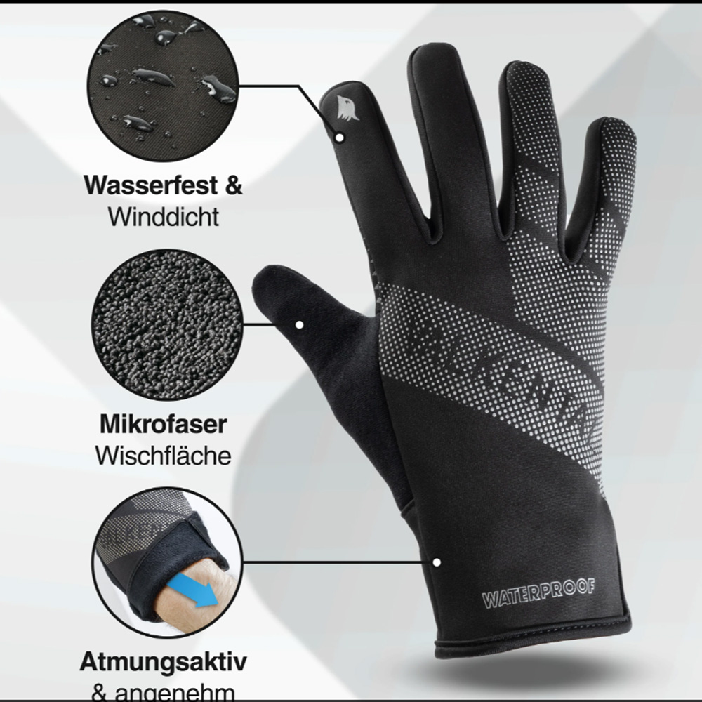 Mit seinem Gewicht von nur 70 g spürst du den Handschuh kaum. Das Touchscreen-sensible Material an Daumen und Zeigefinger ermöglicht dir zudem die mühelose Bedienung deines Smartphones, ohne dass du die Handschuhe ausziehen musst.