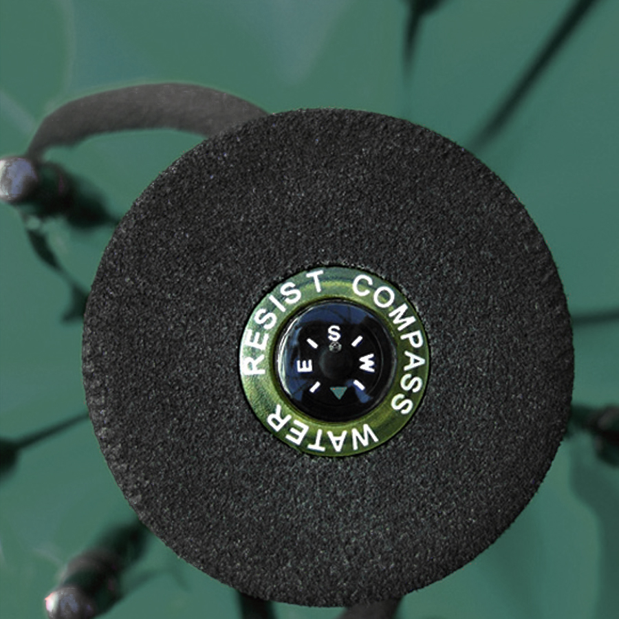 - Handsympathischer Griff aus Hartschaum mit integriertem Kompass und individuell einstellbarer Trageschlaufe