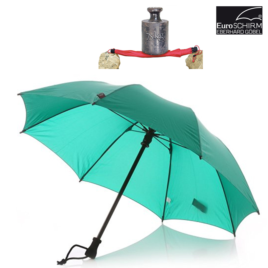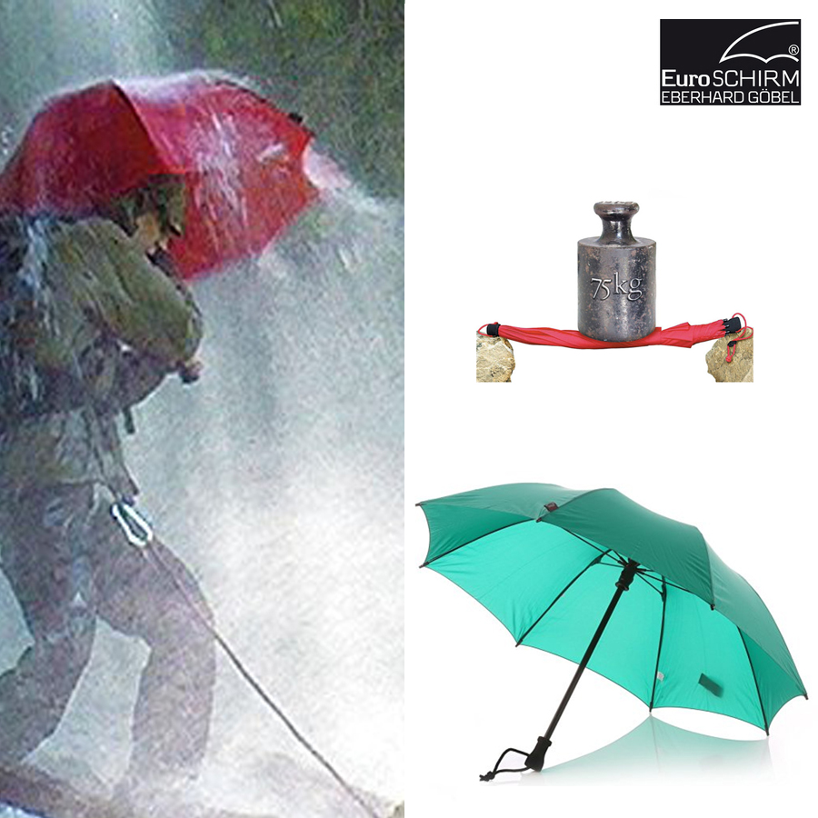 Der sturmfeste Trekking-Regenschirm "birdiepal outdoor" erfüllt die höchsten Ansprüche an Stabilität und Belastbarkeit. Der Schaft und die Schienen aus hochwertigen und extra verstärkten Glasfasern sind besonders widerstandfähig und stabil. Selbst heftige Regenschauer und starke Windböen können dem High-Tech-Trekking-Regenschirm nichts anhaben, denn aufgrund der ausgewählten Materialien und der perfekten Verarbeitung hält er auch extremen Wetterbedingungen sicher stand. Selbst ein plötzliches Umschlagen des Schirmdachs macht dem "birdiepal outdoor" Stockschirm nichts aus. Wird der Schirm über den Schieber geschlossen, springt das Schirmdach unbeschadet wieder in seine ursprüngliche Position zurück.