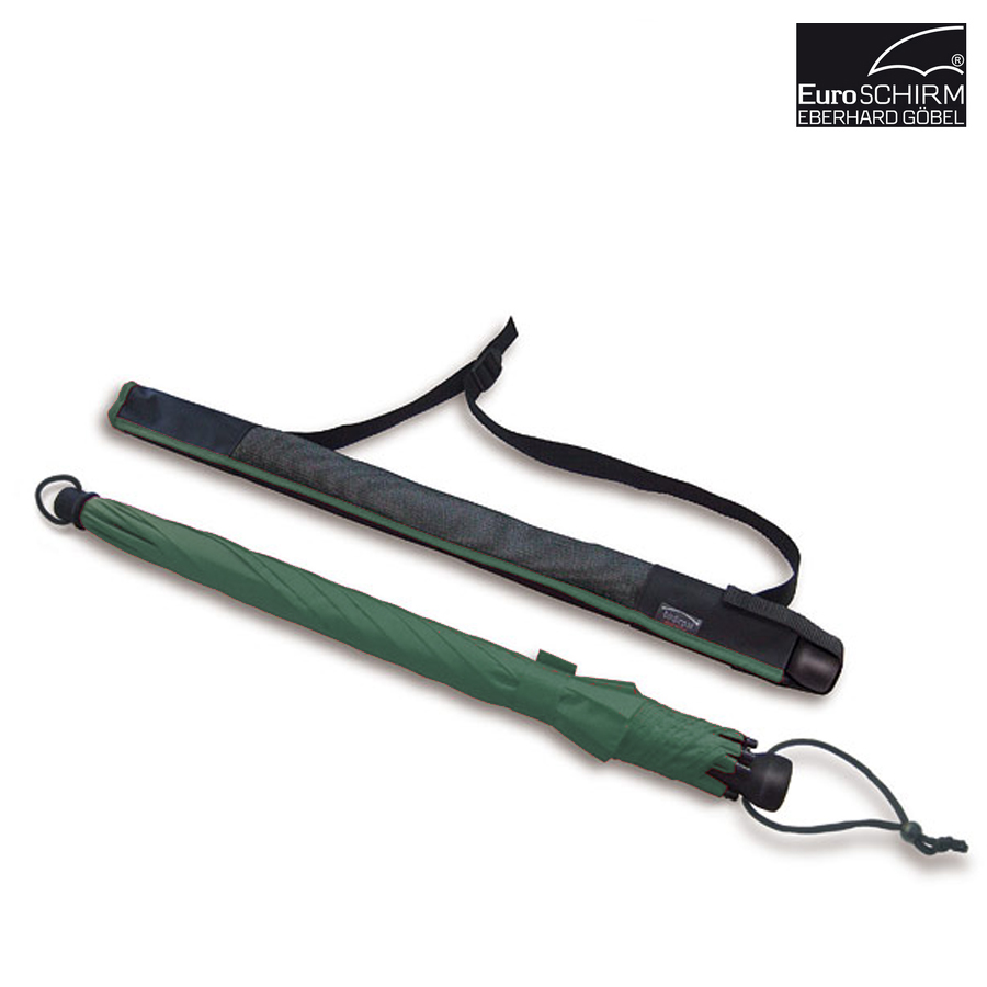 - Mit dem rutschfesten und verstellbaren Schultertragegurt kann der geschlossene Schirm bequem auf dem Rücken getragen werden