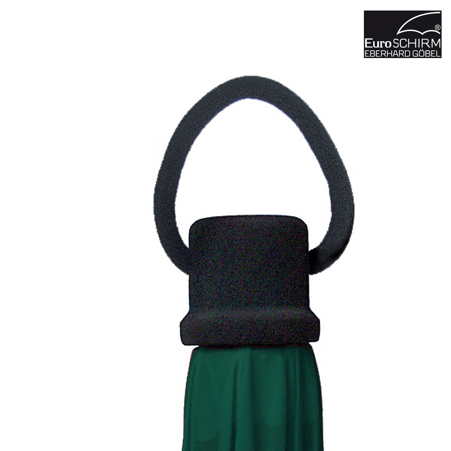 - Mit der kleinen Schlaufe an der Kappe kann der Schirm im geöffneten Zustand aufgehängt werden