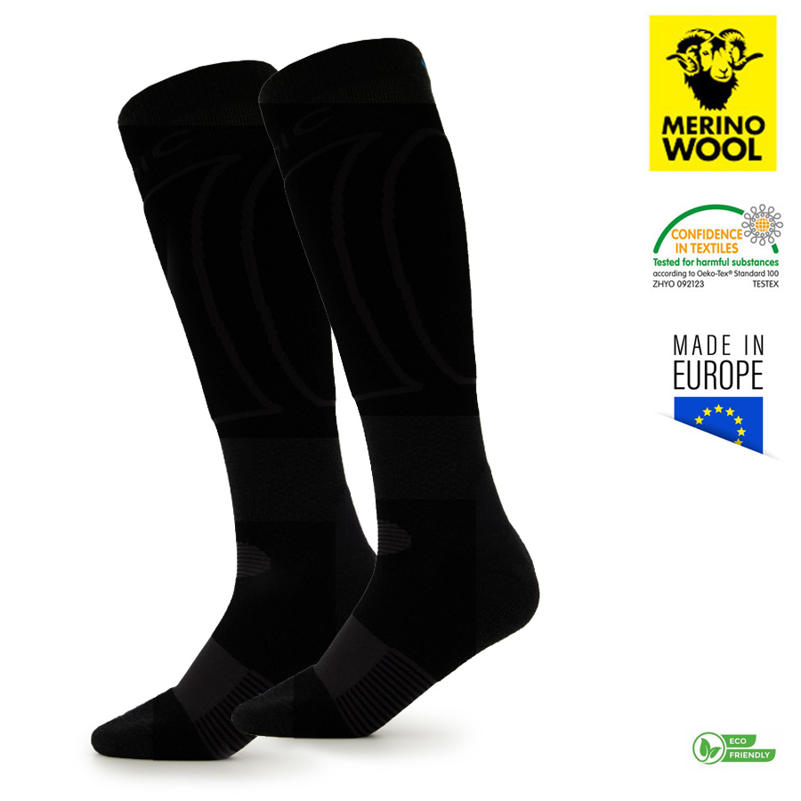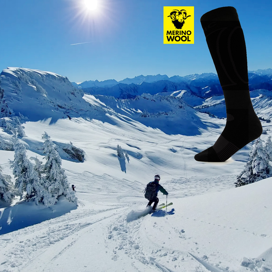 Diese extra langen Merino Skisocken bieten beste Kombination aus Natur- und technischen Fasern. Etwas dicker - sehr gut gepolstert und super zum Skifahren, Snowboard, Skitourengehen geeignet!