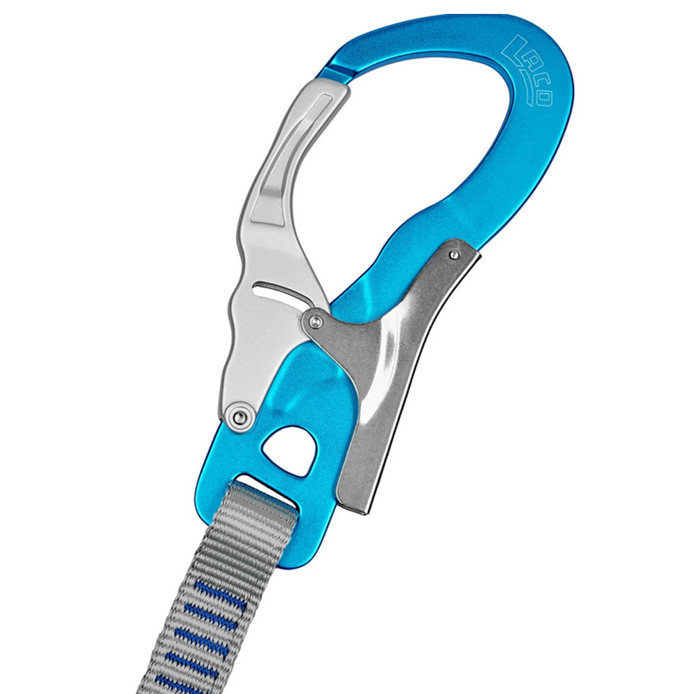 Zweifach-Mechanismus: Der Karabiner ist mit einem Handballenschalter und einem Schnapper ausgestattet, die nur gleichzeitig betätigt werden können, um den Karabiner zu öffnen – so wird ungewolltes Öffnen verhindert.