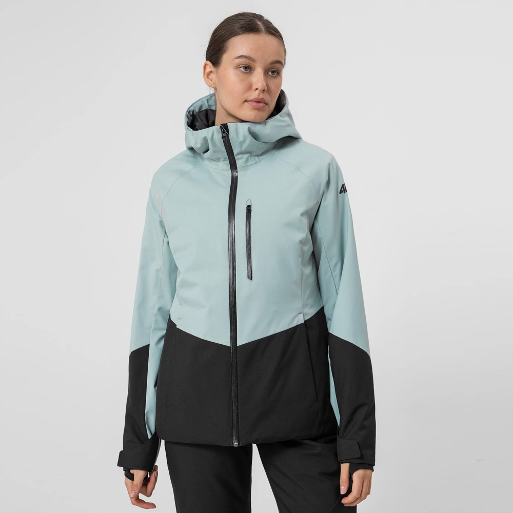 Skijacke mit Kapuze für Damen, ausgestattet mit einer wasserdichten, atmungsaktiven NeoDry 8.000 / 5.000 Membran, um bei Winteraktivitäten Schutz vor mäßigem Regen oder Schneefall zu gewährleisten.