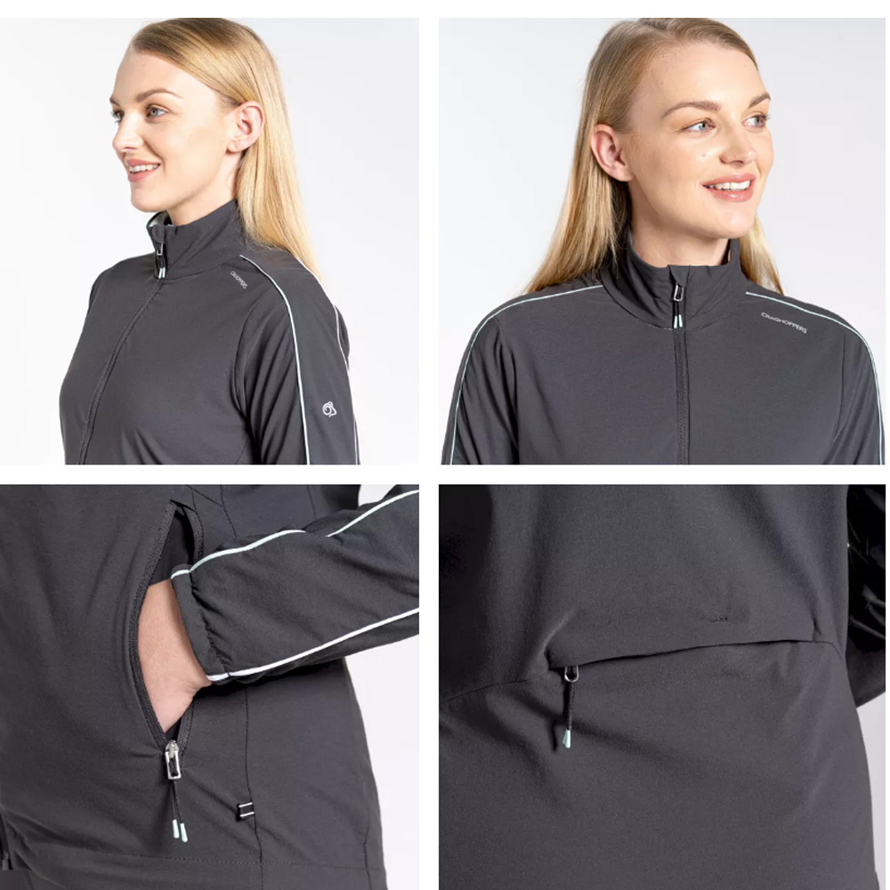 Diese, in dem integriertem Packsack verstaubare Craghoppers Jacke, kombiniert ein flexibles Wind abweisendes Stretch-Gewebe mit der Insektenabwehr von NosiLife,