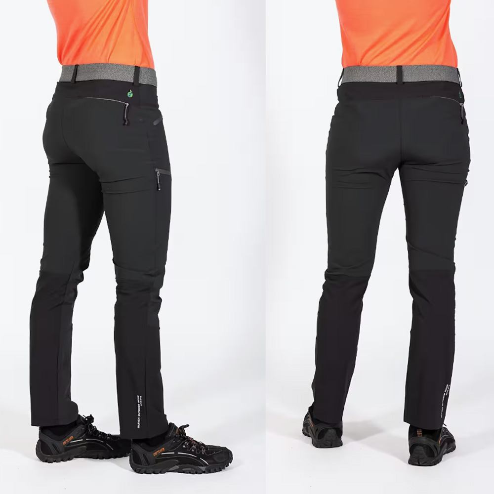 - Zwei Einschubtaschen, eine Beintasche und eine Gesäßtasche jeweils mit Reißverschluss.