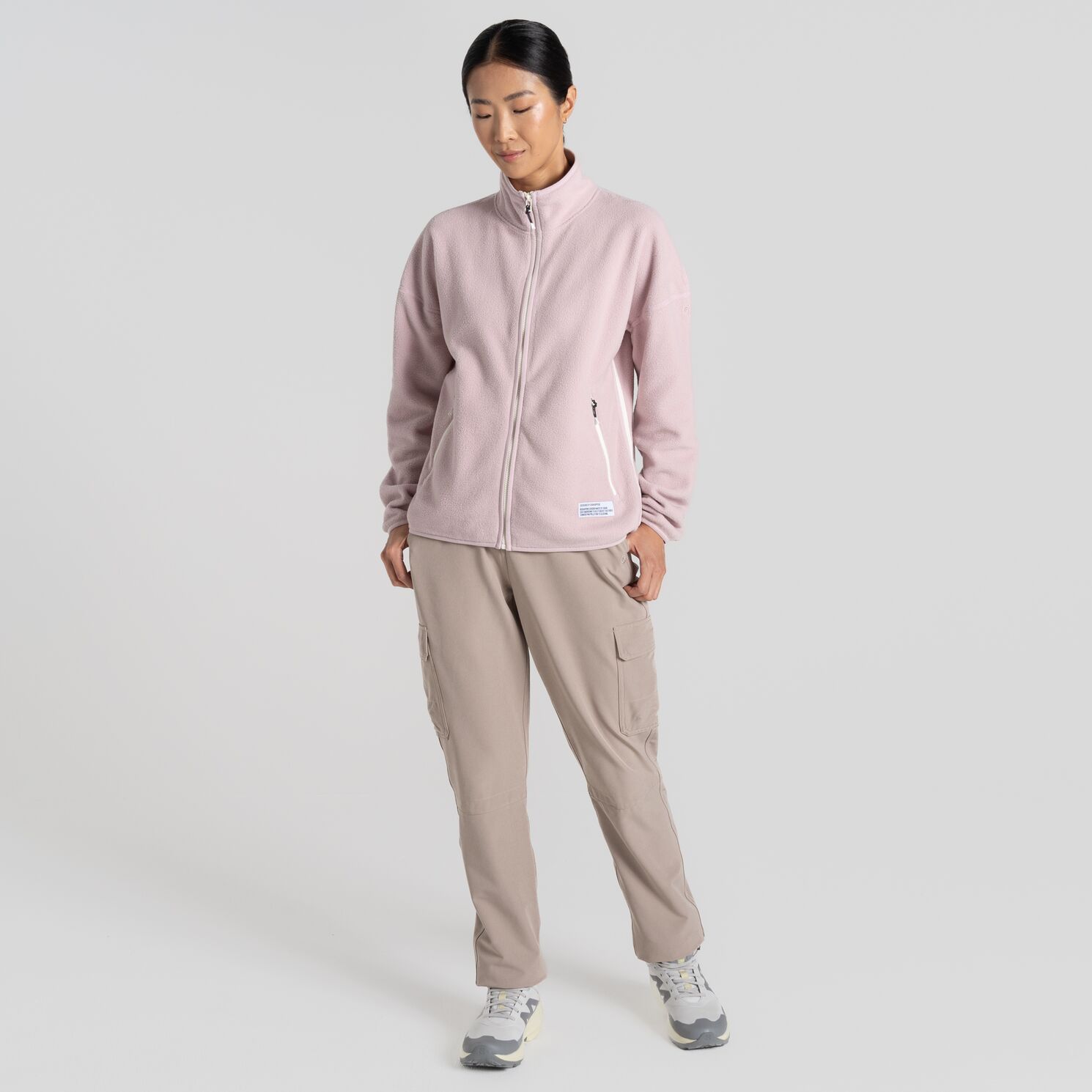 Eine fortschrittliche, isolierende Craghoppers Jacke aus einem Mischgewebe, in dem recyceltes Polyester und smarte, mit Hilfe einer preisgekrönten CO2-Technologie aus Restkohlenstoff gewonnene Polyesterfasern stecken.