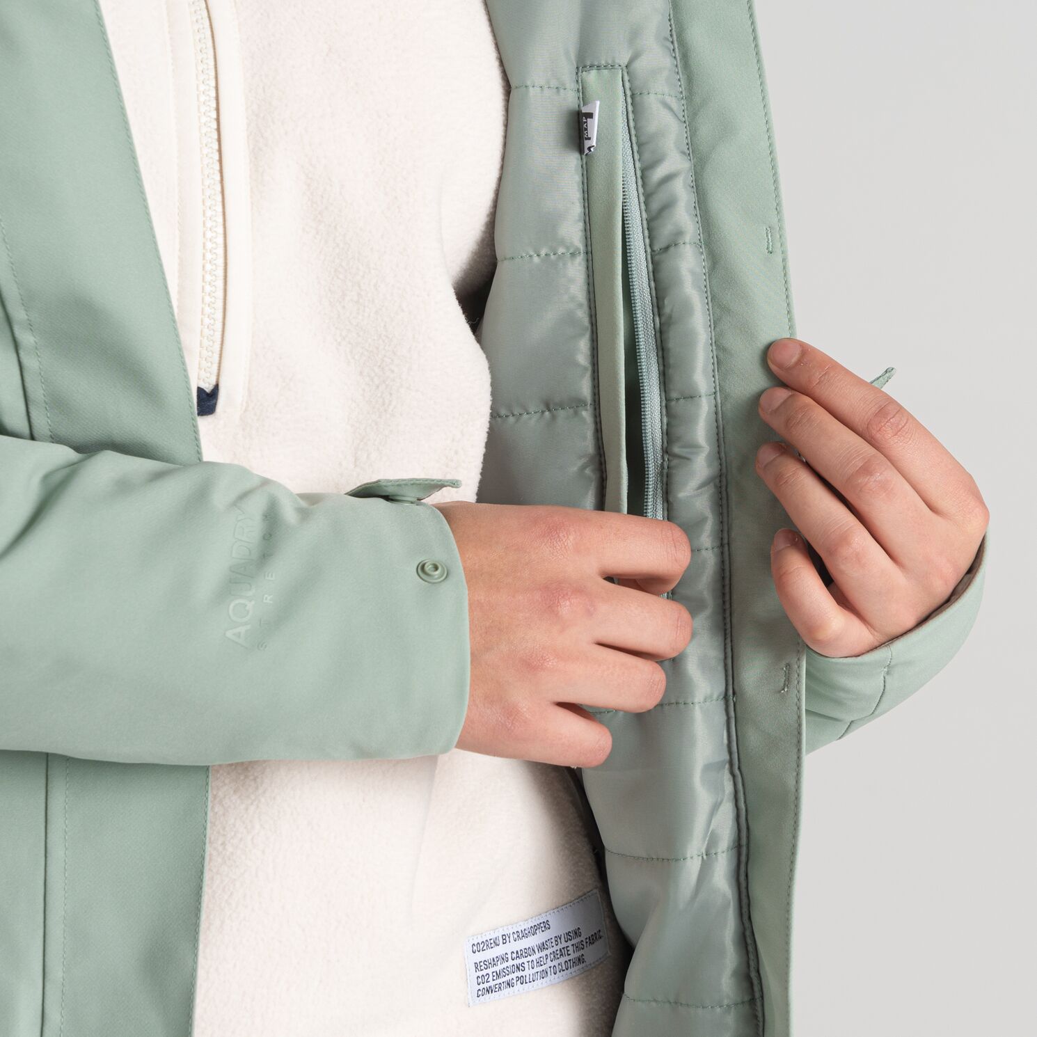 Außen liegt eine Schicht mit der wasserdichten, winddichten und atmungsaktiven Craghoppers AquaDry Membrane, dann folgt eine Schicht mit der leistungsstarke ThermoAir+ Wattierung, welche eine synthetische Alternative zu Naturdaunen darstellt.