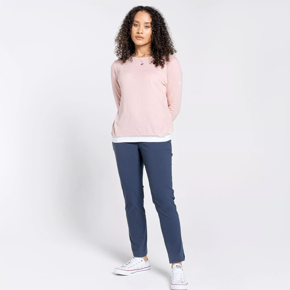 Ein lässiges, sommerliches Oberteil mit U-Ausschnitt von Craghoppers. „Magnolia“ ist schön und praktisch zugleich. Denn das Oberteil besteht aus einem pflegeleichten Baumwoll-Leinen-Mischgewebe, das mit dem pflanzlichen Insektenabwehrmittel NosiBotanical versetzt wurde und so bis zu 25 Wäschen lang hungrige Plagegeister in die Flucht schlägt.