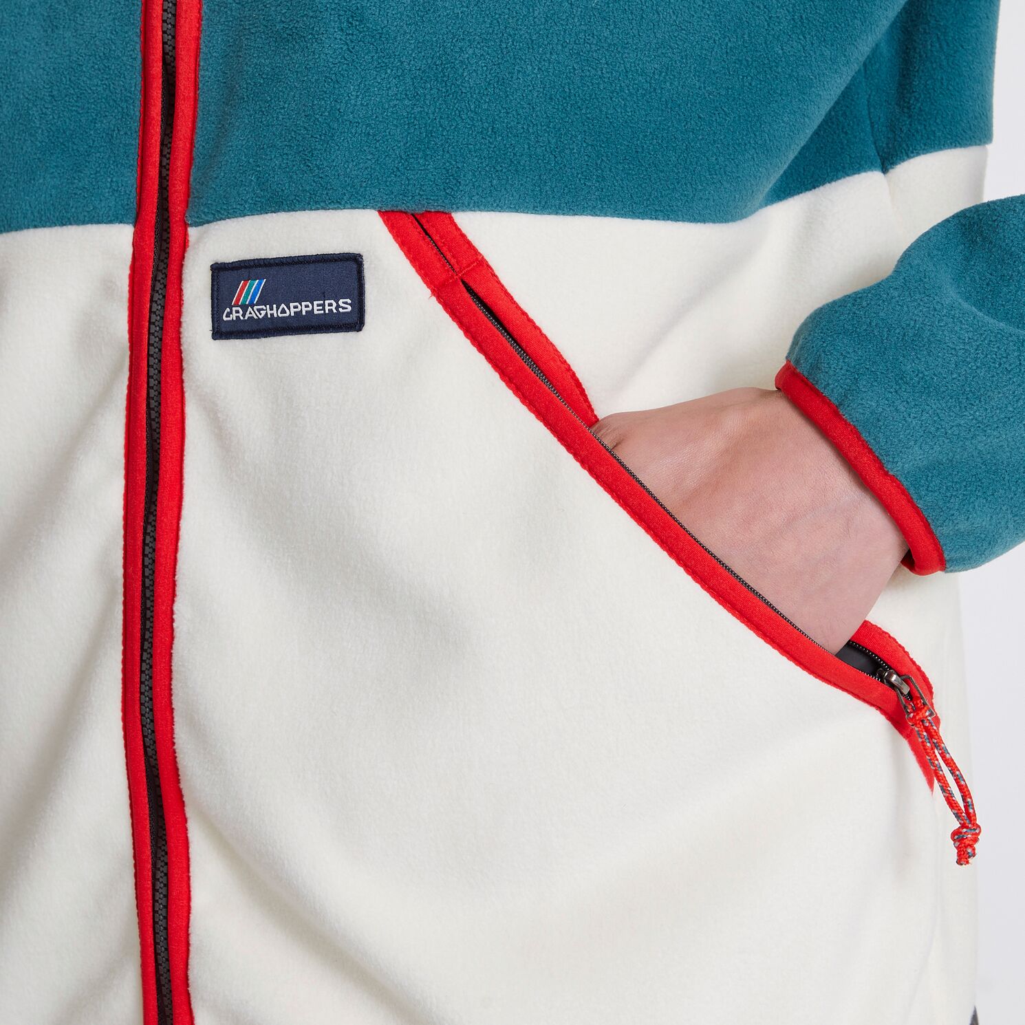 Entdecke eine Fleecejacke, die sich ideal für kühleres Wetter eignet. Das Modell Whitlaw besticht durch ein intelligentes Retro Design mit doppelseitigen Mikrofleece Einsätzen in Farbblock Optik und einem gewebten, in kontrastierenden Farben gehaltenen Besatz am mittig sitzenden Reißerschluss und den paspelierten Taschen. Abgerundet wird der Look durch ein Vintage Logo von Craghoppers.