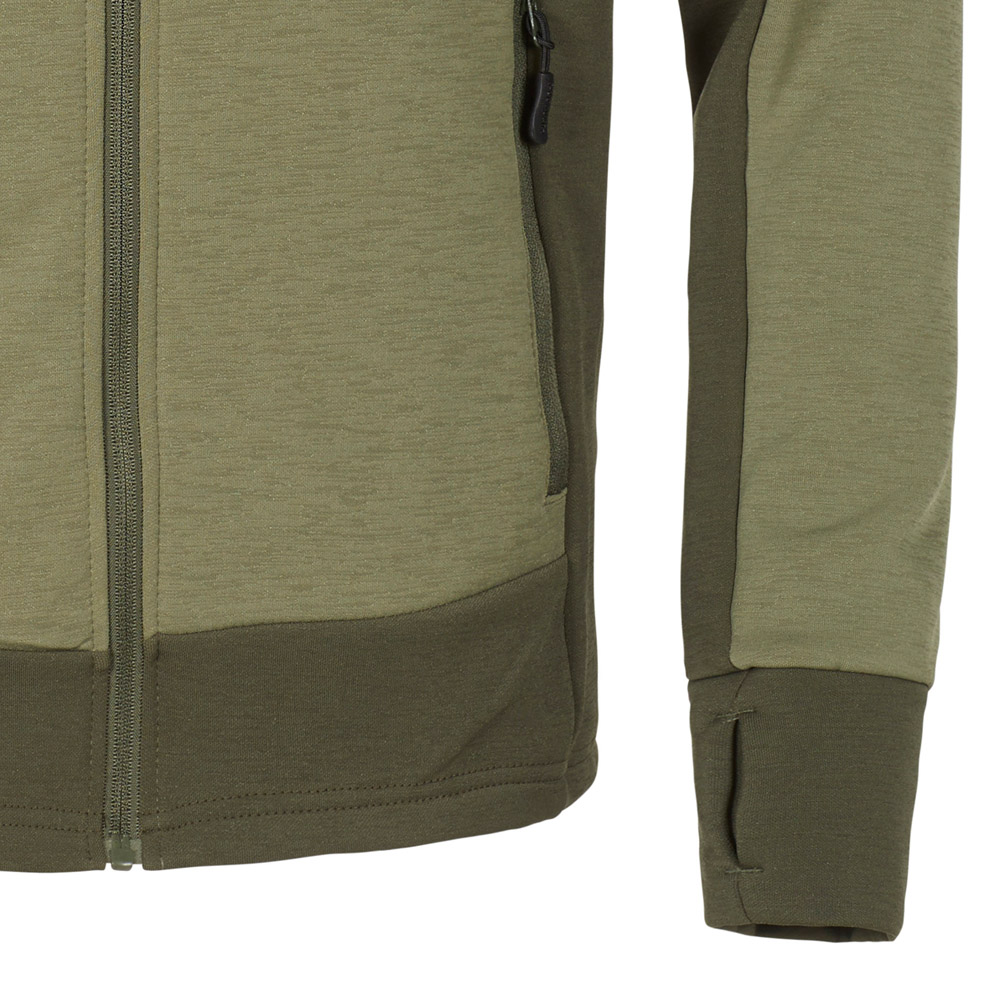 Das stretchige Gewebe aus 96 % Polyester und 4 % Elasthan sorgt für Bewegungsfreiheit und ein angenehmes Tragegefühl. Praktische Details wie die Daumenlöcher, eine Brusttasche mit Reißverschluss sowie zwei seitliche Taschen machen die Jacke besonders alltagstauglich und funktional.