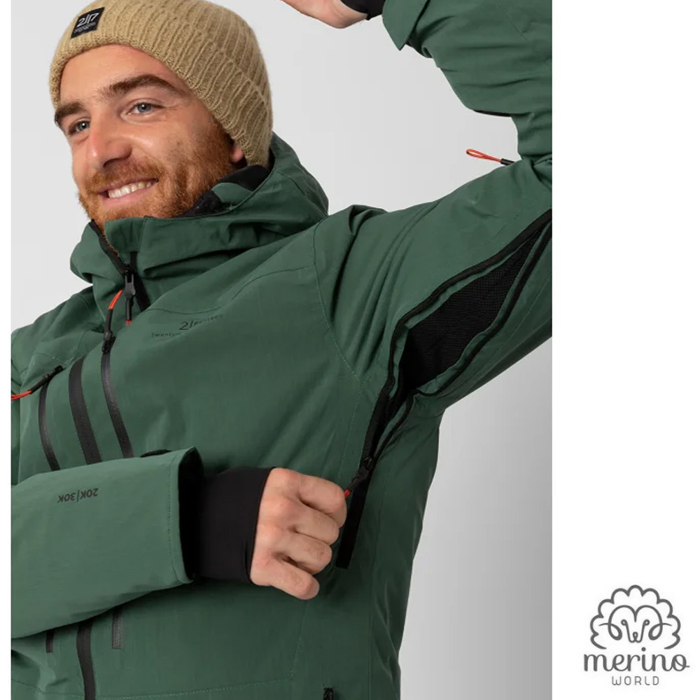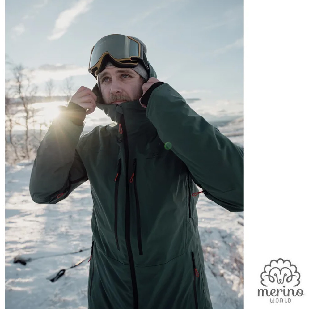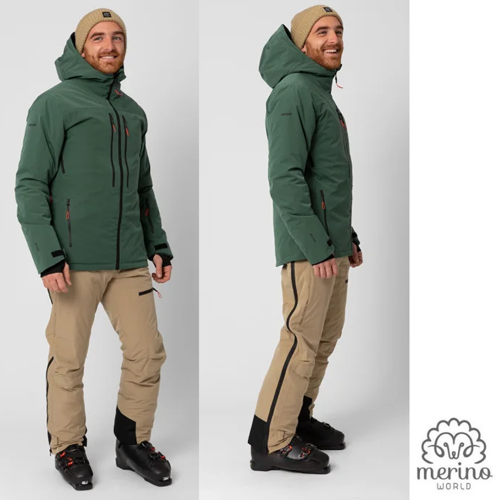 Dank der innovativen Tritech-Membran ist die Jacke wasserdicht (20.000 mm), winddicht und gleichzeitig atmungsaktiv (30.000 g/m²/24h) – ideal, um dich selbst bei Schneefall oder starkem Wind trocken und angenehm temperiert zu halten. Die Isolation aus 60 % Polyester und 40 % Wolle (Merinowolle) sorgt für natürliche Wärme und ein ausgewogenes Körperklima – ganz ohne Überhitzung.