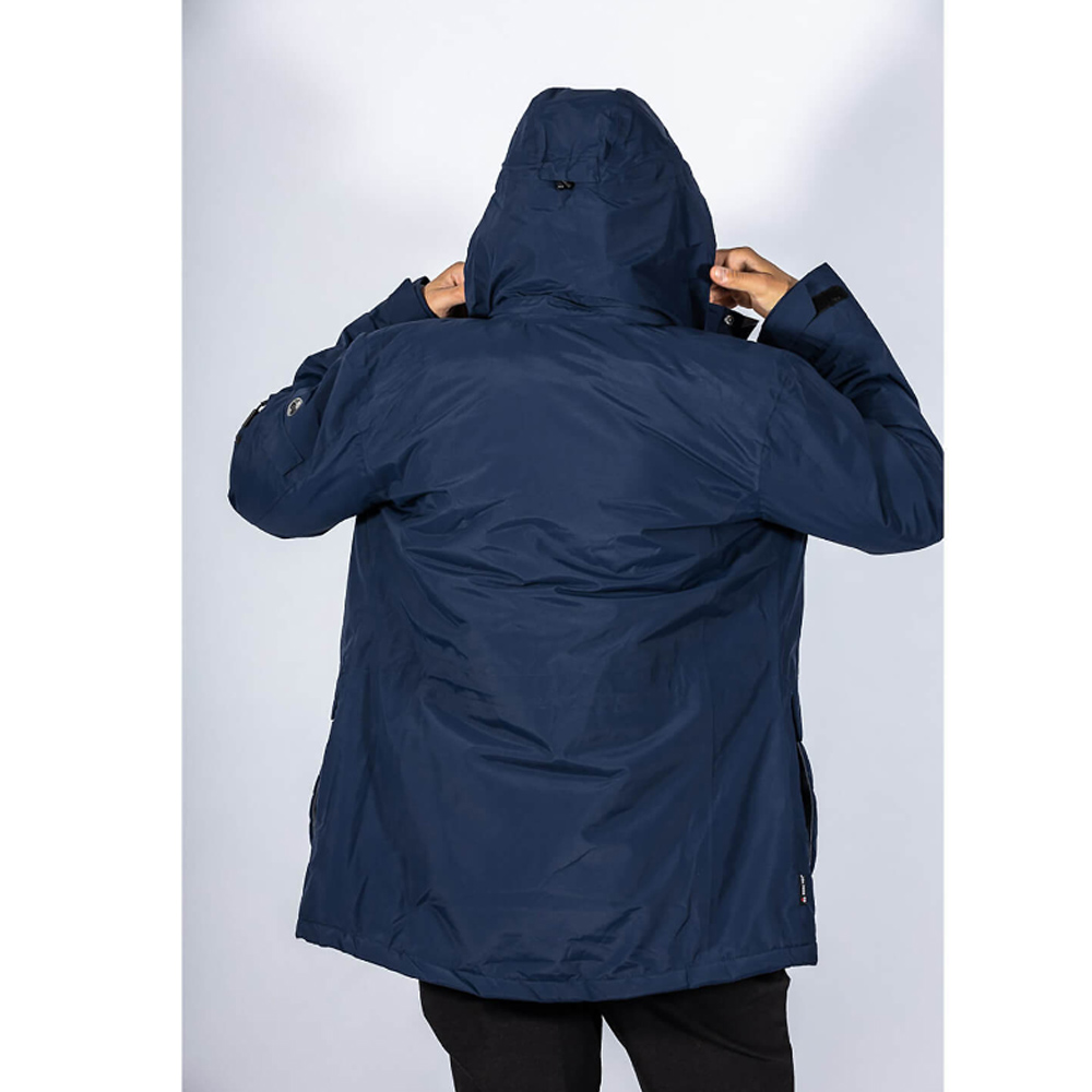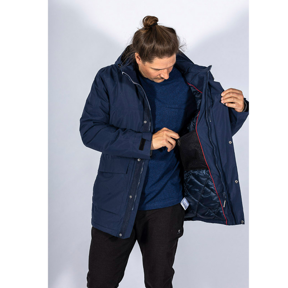 Funktionelle Details wie eine abtrennbare Kapuze, ein Tunnelzug in der Taille zur Weitenregulierung, Rippbündchen innen an den Ärmeln sowie zahlreiche Taschenlösungen (Pattentaschen, Einschubtaschen, wasserdichte Brust- und Armtasche, Innentasche mit Reißverschluss) machen den Parka zu einem vielseitigen Begleiter im urbanen Outdoorbereich.
