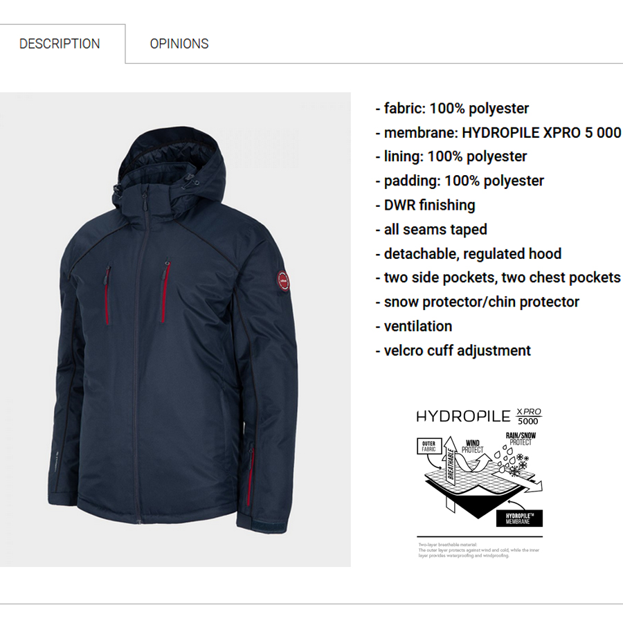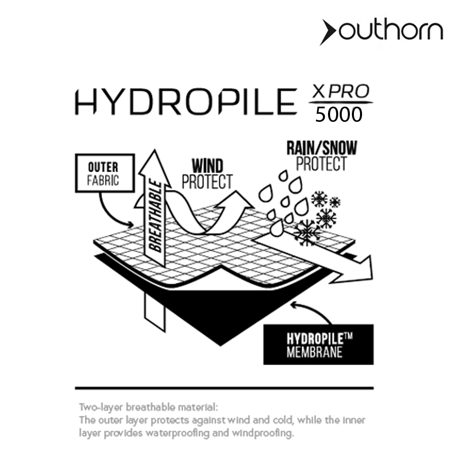 Sehr hochwertige warme und atmungsaktive Membrane HYDROPILE XPRO 5000 schützt vor Wind und Feuchtigkeitsaufnahme