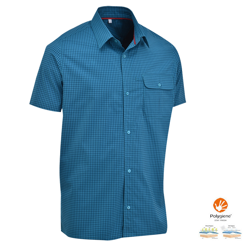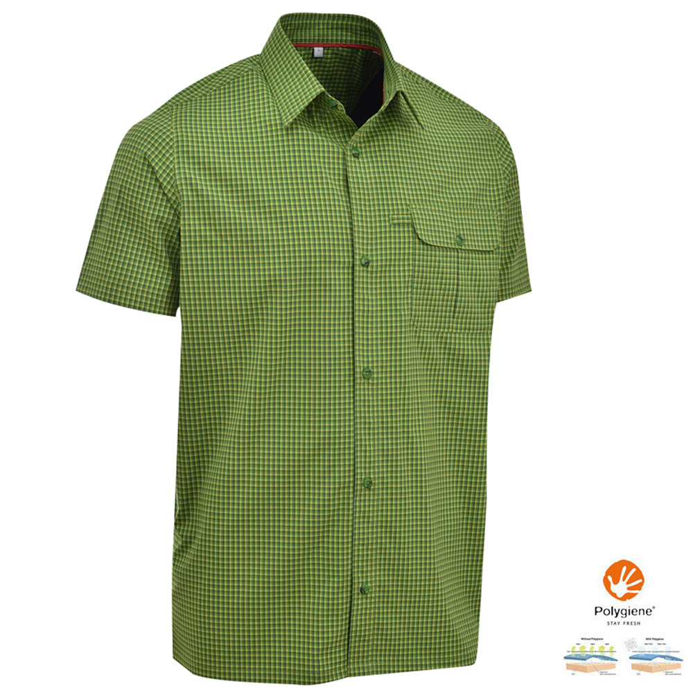 Ein gemütlicher Wanderer braucht ein klassisches kariertes Kurzarmhemd aus Funktionsmaterial mit praktischen Taschen.