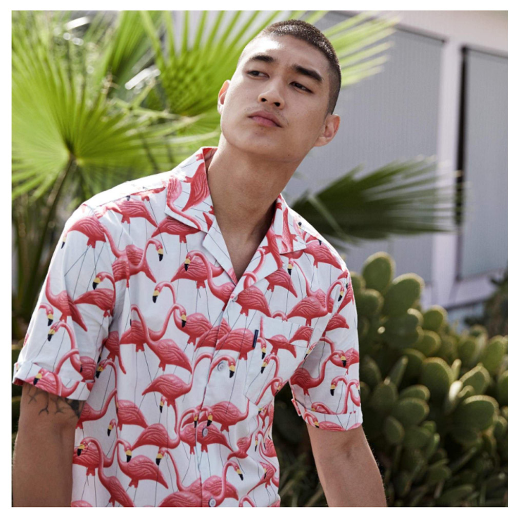 Das besondere Highlight ist das einzigartige Flamingo-Muster, das dem Hemd einen individuellen und auffälligen Charakter verleiht, ohne dabei aufdringlich zu wirken. Ergänzt wird das Design durch eine praktische Brusttasche, die nicht nur funktional ist, sondern auch das lässige Gesamtbild unterstreicht.