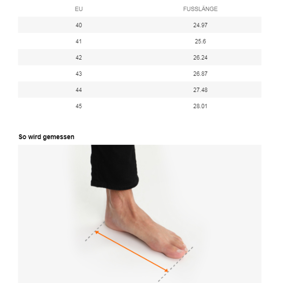 Boxfresh fällt größer aus im Vergleich zur klassischen EU Größentabelle!