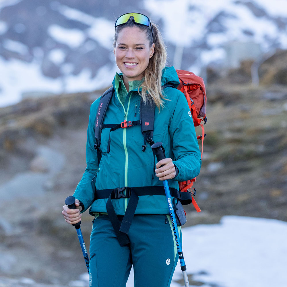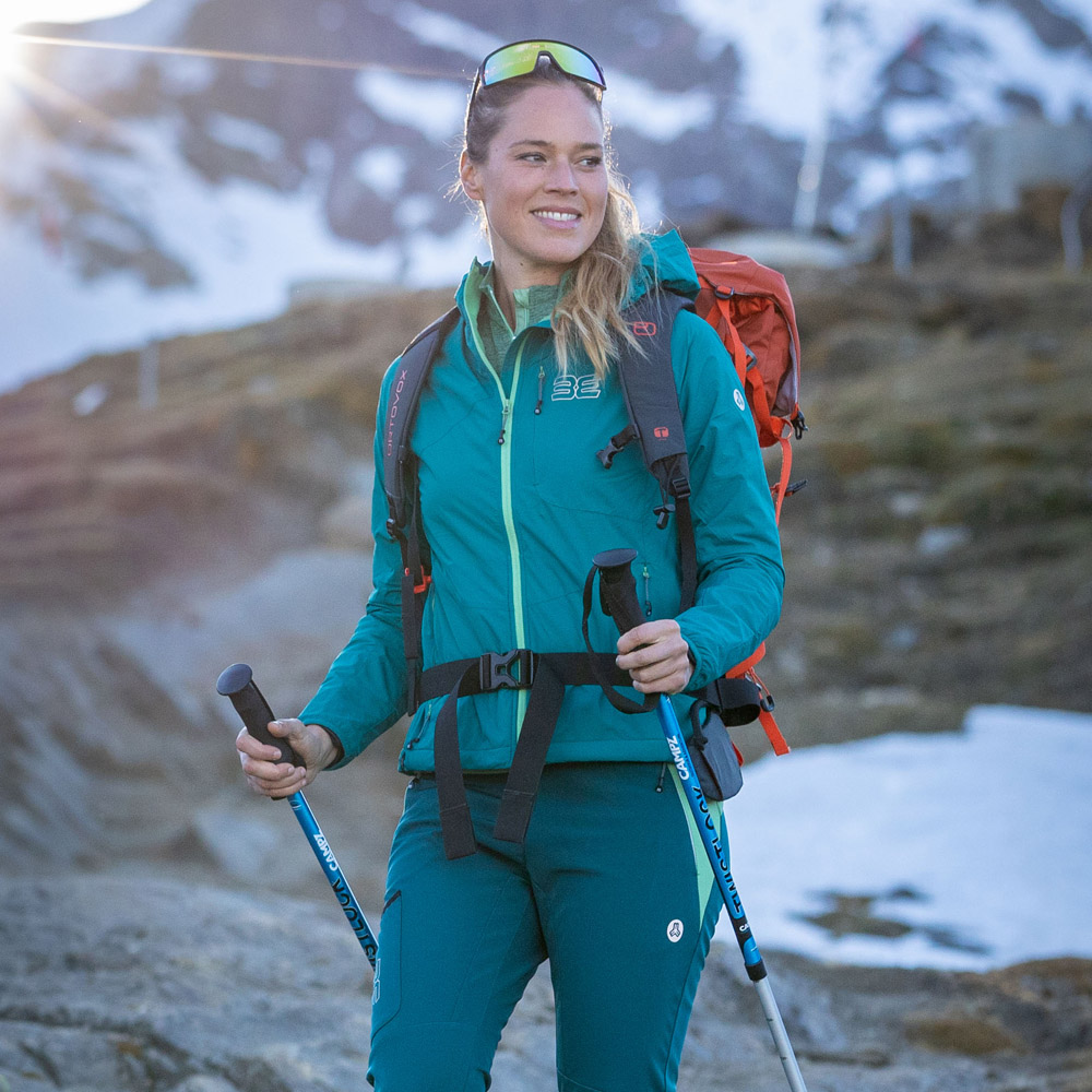 Mit ihrer angeschnittenen Kapuze und der sportlich-femininen Passform vereint die Fichtelberg Stretchjacke Funktionalität und Stil – ideal für aktive Frauen, die auch bei schlechtem Wetter draußen unterwegs sind.